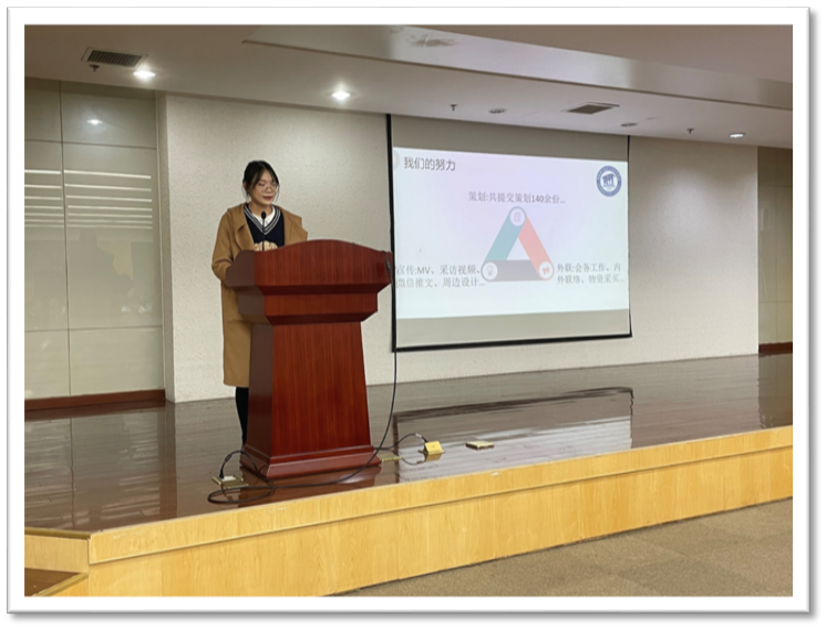 首先,项目负责人陈至伟对2021“美丽邂逅·心引力”整体活动进行总结。她表示,活动历经两个月的精心筹备,在各职能小组组长的带领下和项目组人员,以及志愿者的共同努力下,无论是线上的实时宣发,还是活动现场的筹备都取得圆满成功,每位同学也都在项目中不断成长,锻炼了能力!