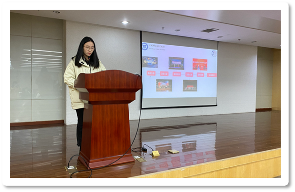 会议开始,项目负责人胡玮怡对项目整体工作进行了介绍。她介绍了本次活动的重要时间节点、项目组的组成部分与各组工作职能,展示了往期活动现场的照片,并介绍了近几年新年联欢晚会的各个主题。为了营造欢乐祥和的气氛,为全校师生打造一场精彩绝伦的晚会,胡玮怡还对节目的精彩度、流畅度以及人员要求作出了展望。希望在2021的最后一个月,可以给上万学子留下幸福难忘的回忆,一起迎接崭新的一年!