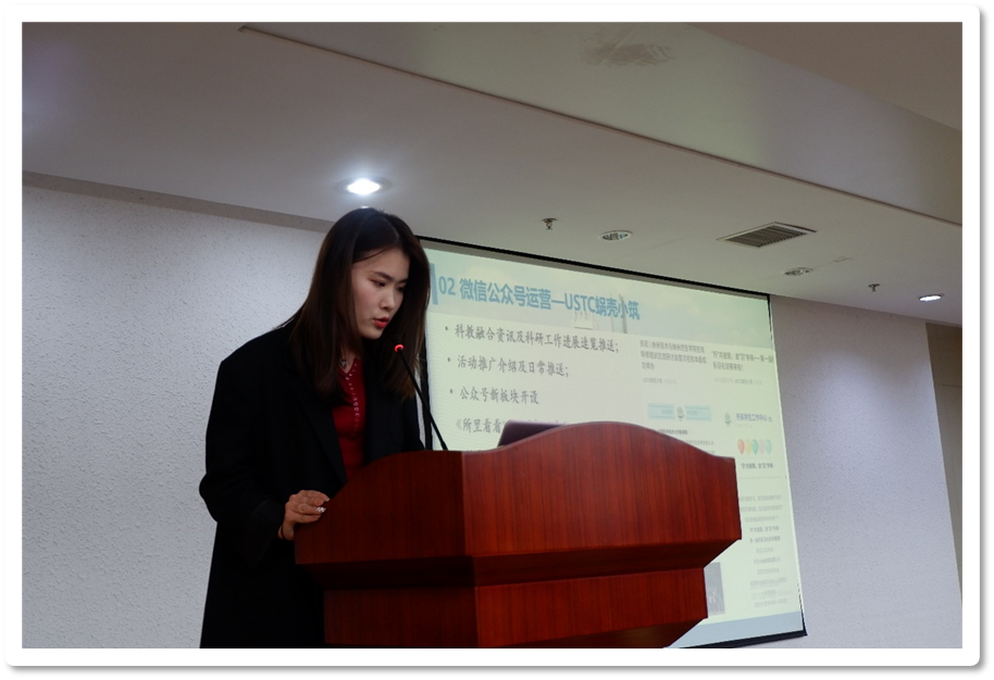 随后,所系学生工作中心副主任李孟珈对中心的发展历史以及我校所系概况进行了简要介绍,提出活动要体现出科大情怀、科大特色、科大底蕴,增进所系学生对科大的认同感和归属感。同时她也向在场人员展示了所系学生工作中心最近的宣传成果,并预祝本次活动取得圆满成功。