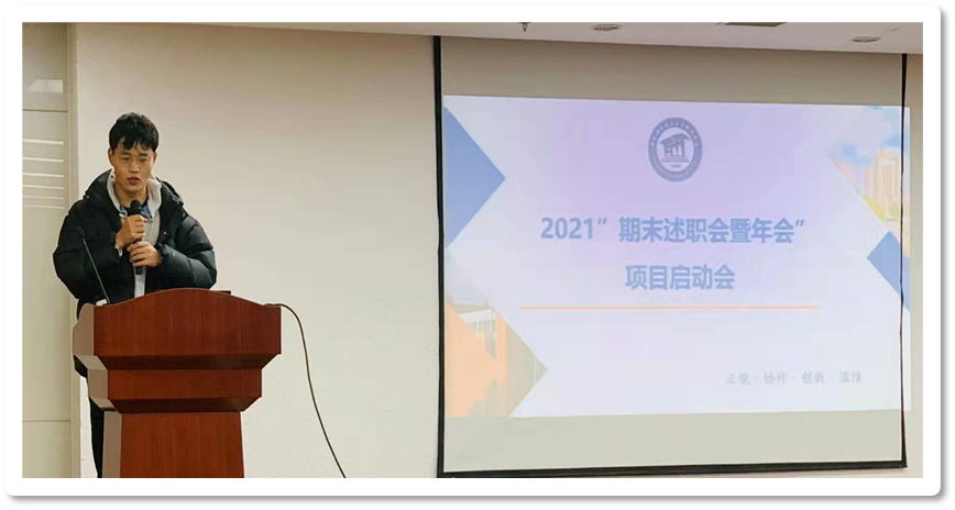 2021年12月25日上午9:30,2021校研究生会“期末述职会暨年会”项目启动会在西区科技实验楼二楼会议室召开。跟进委员张嵩林及项目组全体成员出席。会议由项目负责人张亮主持。