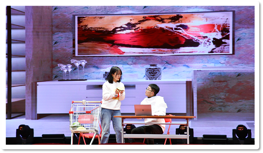由汤霄杰、喻箫等同学带来的小品《时间都去哪儿了》给大家带来了很多欢笑的同时,也让在信息爆炸的时代里,面对手机的诱惑而迷失的青年陷入思考,警示青年学子应当珍惜时光,不负韶华。