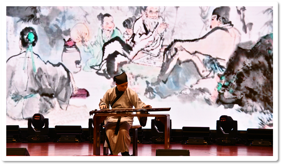 唐珙根同学带来的古琴演奏《酒狂》,通过沉重的低音和长音描绘了人在酒醉之后步伐踉跄的神态,表现了阮籍本人外形酒醉佯狂,内心疾恶如仇的意境。
