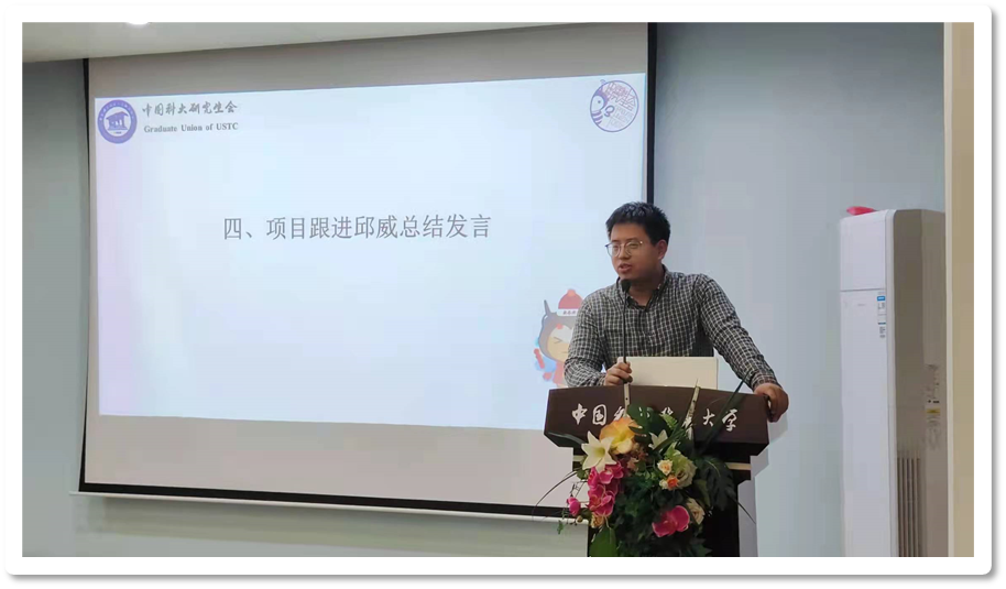 项目跟进邱威首先肯定大家的工作,感谢大家对项目的付出,线上晚会热度很高源于大家的精心准备。重点提到宣传组文创品的设计、策划组主题篇章的设计。最后指出了活动过程中出现的一些小问题,我们应吸取经验教训,继续努力。