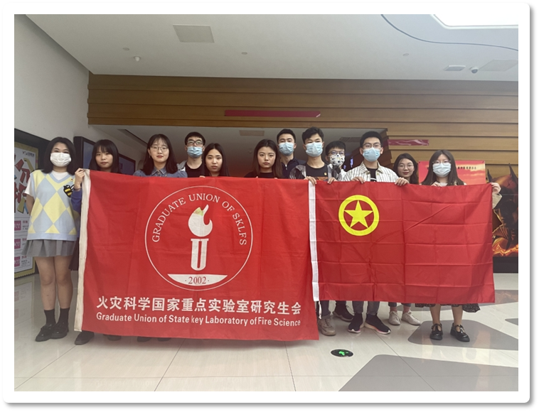 活动最后,全体同学一同合影留念。在下一步工作中,火灾科学国家重点实验室第十八届研究生会自组织团支部将持续通过丰富的党史学习教育形式和载体进一步引导同学们重温历史,坚定信念,不忘初心,践行使命。