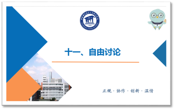 会议第十一项,自由讨论环节。针对赣江创新研究院岳志航同学、紫金山天文台滕伟霖同学、等离子所席冠玉同学等提出的扫码报备、跨校区出行、选课困难等问题,夏清泉老师和所系学生工作中心负责同学进行了详细的答复,表示会将相关问题汇总后对接有关部门,跟进问题的解决并及时公示处理结果。
