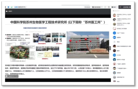 会议第十项,中国科学院苏州生物医学工程技术研究所闫海洋同学进行研究所介绍及班级活动分享。他首先对苏州医工所基本情况和2021级研究所班级组成进行了简单说明,随后对班级积极参加或组织的活动展开了详细介绍,表示这些活动极大地丰富了班级同学的生活。他分享了苏州医工所班委们为解决疫情期间同学们的具体问题所做的工作,展现了极强的责任意识、担当意识,给在场的所系班级负责人提供了良好的经验,具有很强的借鉴意义。