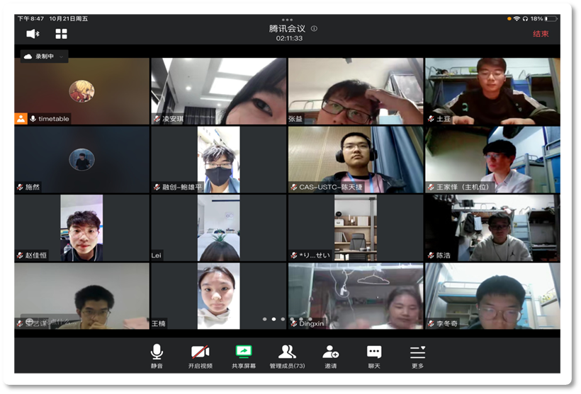 10月21日晚上19:00,2022-2023学年第一学期校研究生会第三期骨干培训于线上腾讯会议顺利举行。本次培训邀请了科大2003级校友、丛青设计创始人沈丛青和校研究生会宣传部副部长施然担任主讲嘉宾,培训内容主要包括有关文创设计与摄影两方面的技能。来自校研究生会、校学生会、社团管指委、院(系)直属研究生会等学生组织的七十多名学生骨干参加了本次培训。本次培训由校研究生会人力资源部骨干凡聪聪主持。