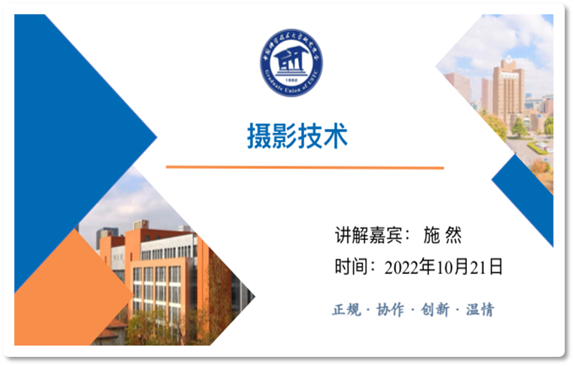 接下来,施然同学从摄影理论基础、相机操作与手机摄影共三个方面展开了摄影技能的培训。在讲解的第一部分施然同学不仅详细讲解了在摄影过程中取景与构图的不同操作,还以实例为大家呈现了曝光与虚实的不同对摄影作品的影响;第二部分则从为大家讲解了相机使用的一些基本操作,比如如何对焦、测光等;施然同学在第三部分和大家分享了一些手机摄影的小技巧,帮助同学们利用手机也可以拍出更多好看的照片。在培训结尾,施然同学为大家集中进行了有关摄影技能的线上答疑。