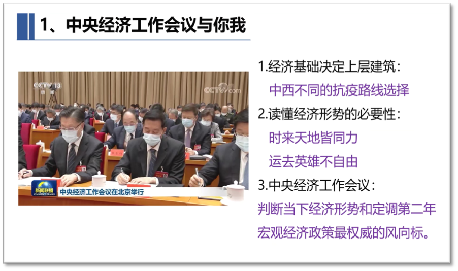 首先,王睿师兄介绍了中央经济工作会议与你我的关系,指出中央经济工作会议是判断当下经济形势和定调第二年宏观经济政策最权威的风向标。在强调这次会议的重要意义的基础上,王睿师兄介绍了我国经济韧性强、潜力大、活力足的特点,要坚定信心做好经济工作。最后,他就扩大国内需求、加快建设现代化产业体系等会议重点内容进行了解读。
