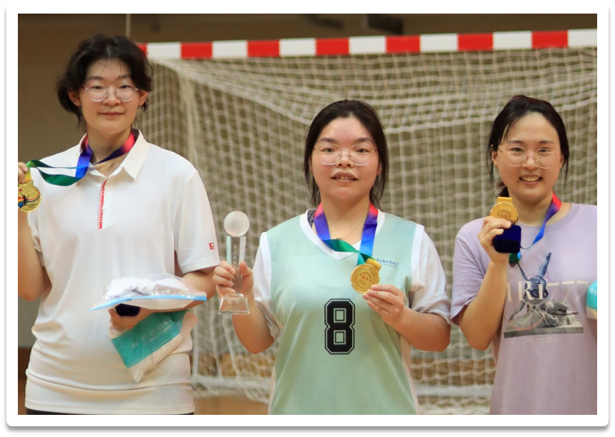 相比竞技赛场,趣味赛显得轻松且妙趣横生,像是激烈角逐后的休闲活动,比赛现场和谐有序。此外还有不少女同学参与了我们的比赛,赛场上得分连连,毫不逊色。