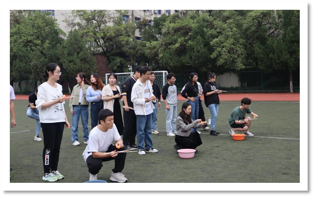 下午15:30,校研究生会成员在东区操场开展秋季学期的第一次团建活动,全体成员分成若干小组进行游戏。在“趣味套圈”等系列破冰游戏中,大家慢慢变得熟络起来。在裁判、主持人和领队的带领下,各个小组成员逐渐加深了对彼此的认识,现场氛围十分融洽。