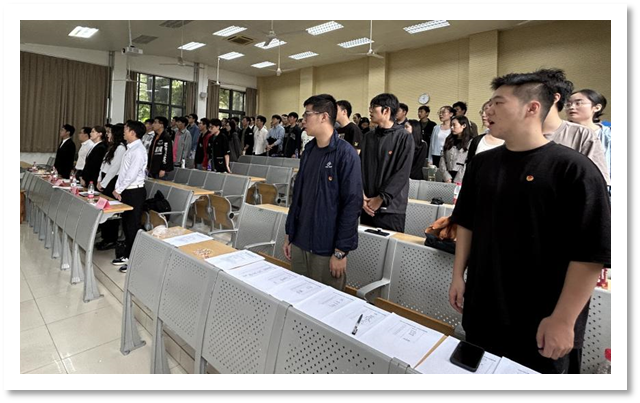 会议第七项,奏唱校歌。在中国科大合唱团成员发声技巧讲解和校歌教学之后,大家更加熟悉校歌的旋律节奏,能够更加自如的控制气息,更响亮、更熟练的唱出校歌。