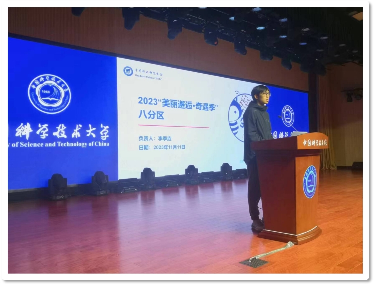 2023年11月11日(周六)13:30,中国科大研究生会2023年“美丽邂逅”大型交友活动启动会在西区学生活动中心二楼礼堂召开。本次启动会由项目负责人夏宇辰主持,项目跟进张劢、校研究生会主席团成员赵佳恒、所系学生工作中心主任曹梦蝶、办公室主任陈俊名、人力资源部部长李昱黎、宣传部部长张亚琳、学术科技部部长范晴、权益服务部部长吴东洋、项目负责人龚昱、夏宇辰及项目组成员出席了本次会议。