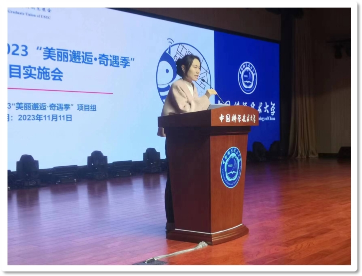 2023年11月11日(周六)13:30,中国科大研究生会2023年“美丽邂逅”大型交友活动启动会在西区学生活动中心二楼礼堂召开。本次启动会由项目负责人夏宇辰主持,项目跟进张劢、校研究生会主席团成员赵佳恒、所系学生工作中心主任曹梦蝶、办公室主任陈俊名、人力资源部部长李昱黎、宣传部部长张亚琳、学术科技部部长范晴、权益服务部部长吴东洋、项目负责人龚昱、夏宇辰及项目组成员出席了本次会议。