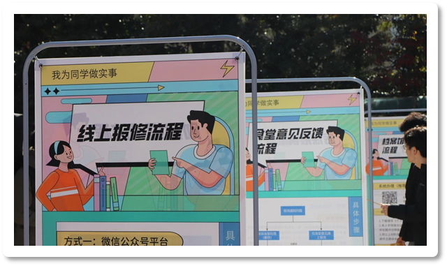 服务台开设线下权益留言板,给广大学子提供了反馈校园问题的平台,这些问题也将在线下地推活动结束后,由校研究生会权益服务部整理,并统一反馈给相关部门,旨在完善校园设施和管理,提高教学质量和水平,以满足学生的需求。