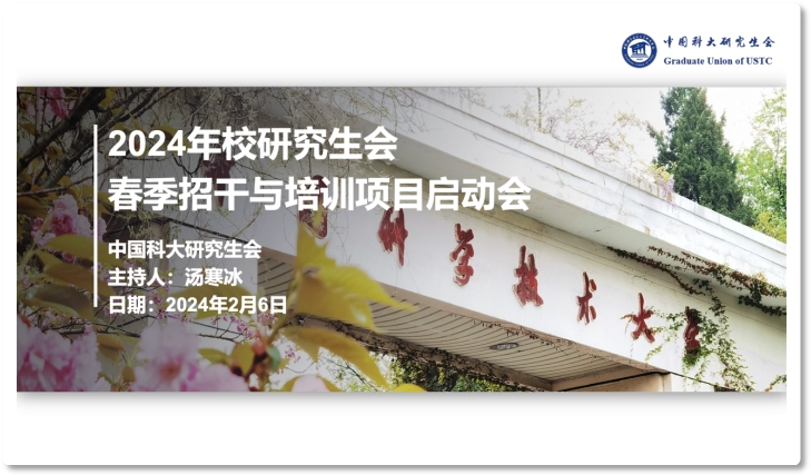 至此,2024年校研究生会春季招干与培训项目启动会圆满结束,最后预祝本次研究生会招干与培训项目顺利举办,为校研究生会注入新的活力!