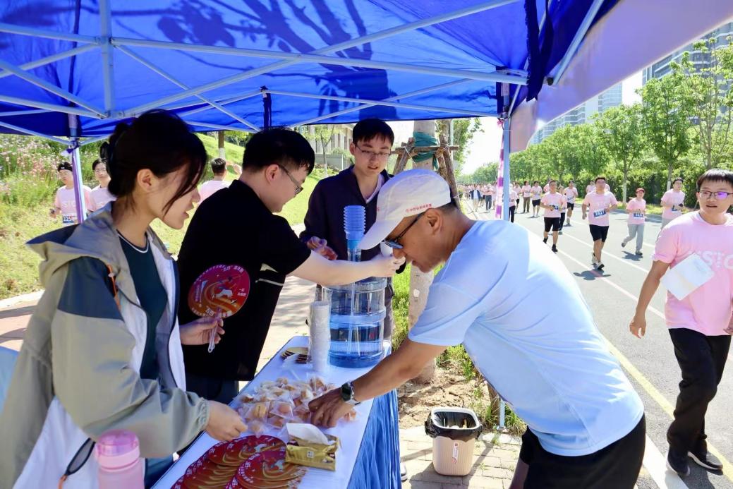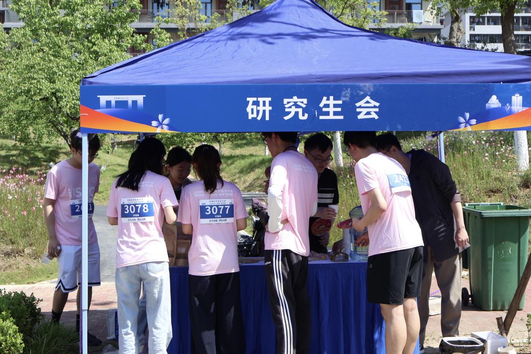 针对四月末气温升高、活动耗能大的特点,我校研究生会权益服务部提前部署,在两校区赛道沿线设立标准化宣传补给点。活动当日清晨,校研究生会骨干提前数小时到岗,高效完成物资分类、点位布置等工作,确保服务流程规范有序。