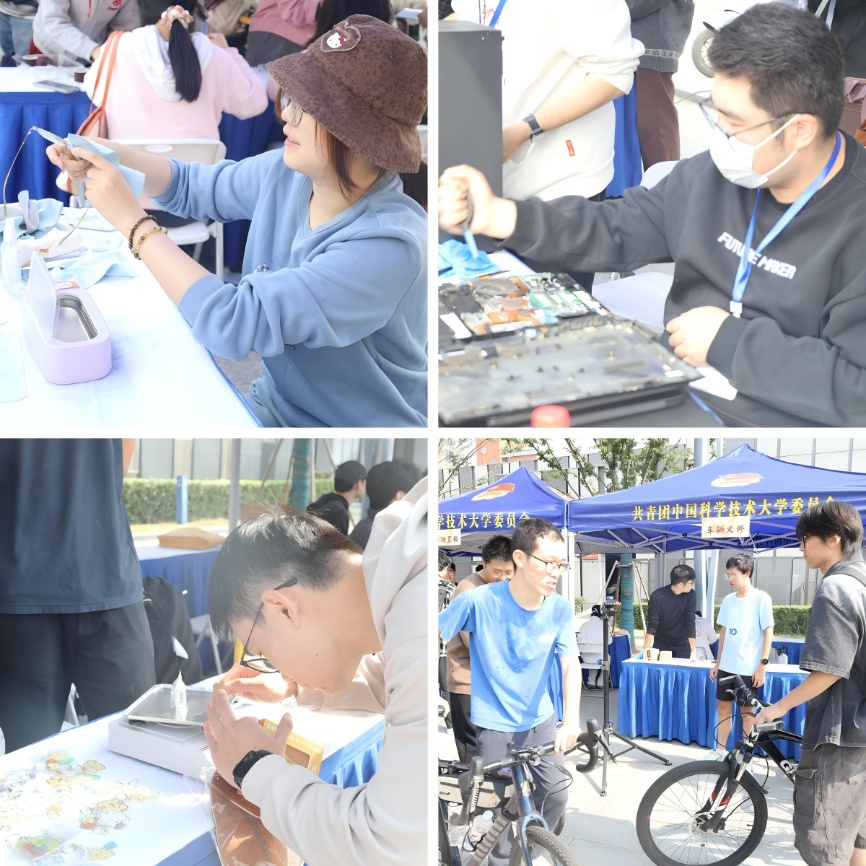 活动现场,服务类摊位前人气爆棚。“电子义诊”的志愿者们为同学们提供耐心细致的电子产品诊修服务,“眼镜首饰清洗”摊位为师生带来清晰视野和“首饰重生”,“车辆修理”摊位的志愿者提供了专业的自行车与电动车检修服务。