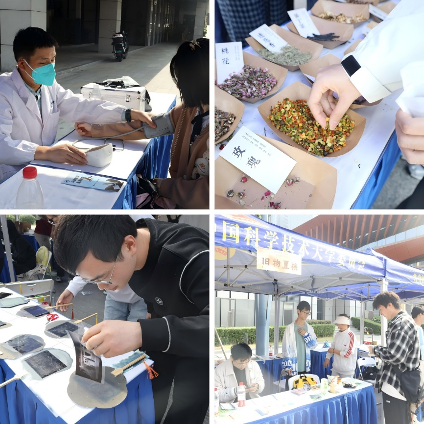 关爱身心,呵护青春韶华。校医院医生于“健康检查”摊位,为同学们测量血压,并给予宝贵的健康建议;“养生茶DIY”摊位让大家体验亲手调配养生茶包,提醒大家在繁忙的学习科研中关注自身的身心健康。“旧物置换”摊位鼓励同学们以物换物、书写祝福,共同践行环保理念。