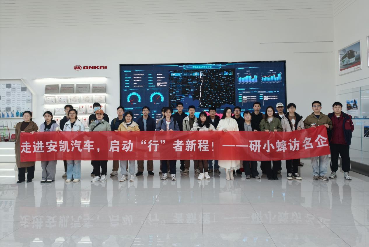 为搭建学生实践学习平台,链接新能源产业技术前沿,11月26日下午,校研究生会和校学生职业发展协会组织24名不同专业学生,走进安徽安凯汽车股份有限公司,开展“智企未来”研小蜂访名企活动。通过实地探访生产车间与实验室,与企业工作人员面对面交流,学子们得以近距离触摸车企创新脉络,将课堂知识与产业实践深度衔接。